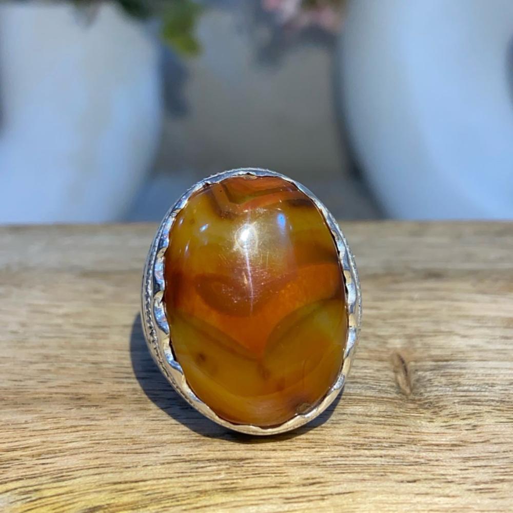 تصميم الخاتم يبرز جمال الحجر ويجعله قطعة فريدة يمكن ارتداؤها يوميًا أو في المناسبات الخاصة.