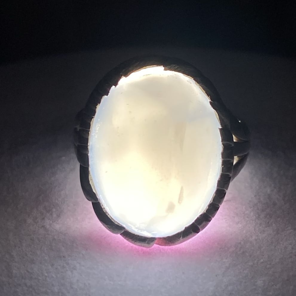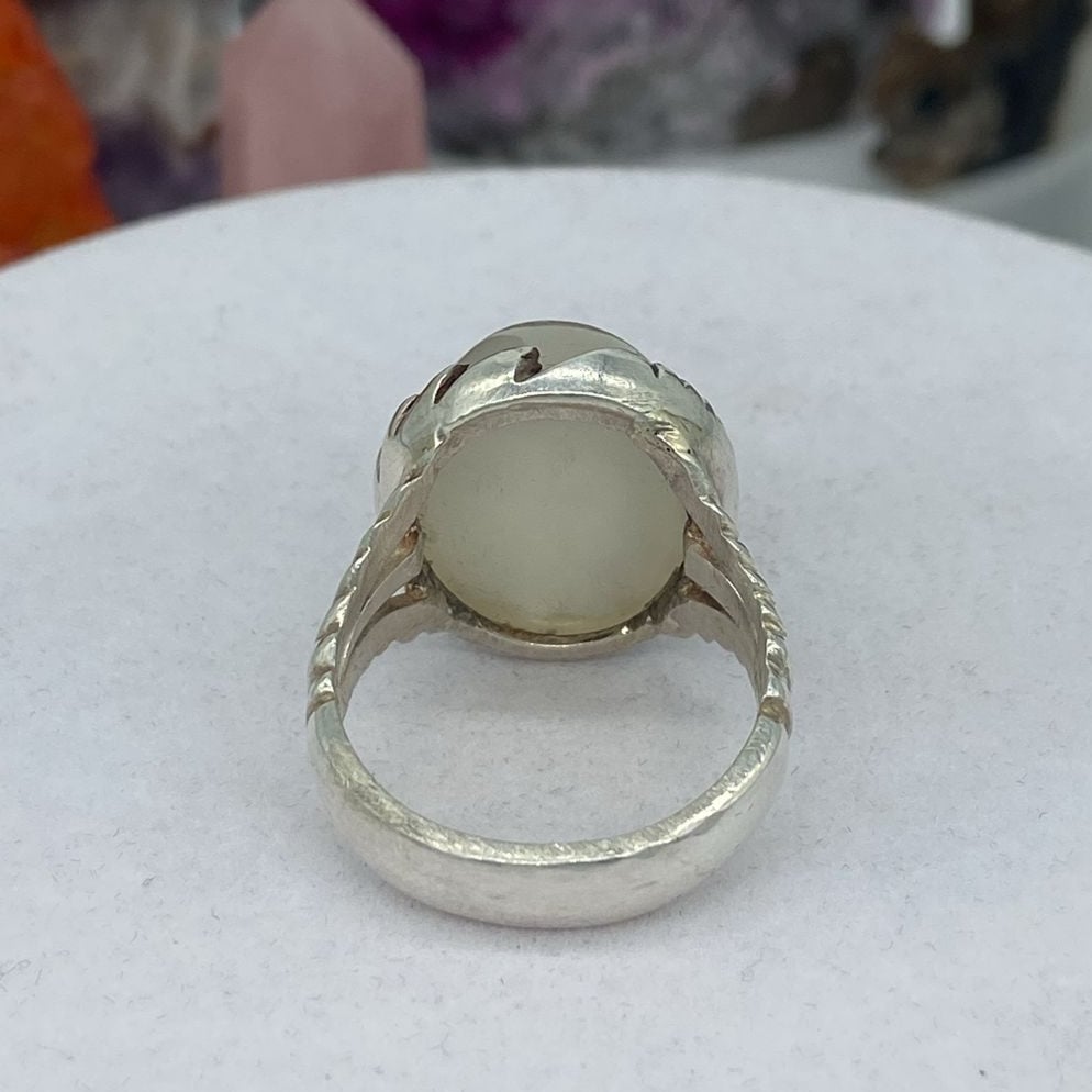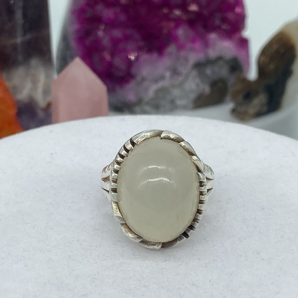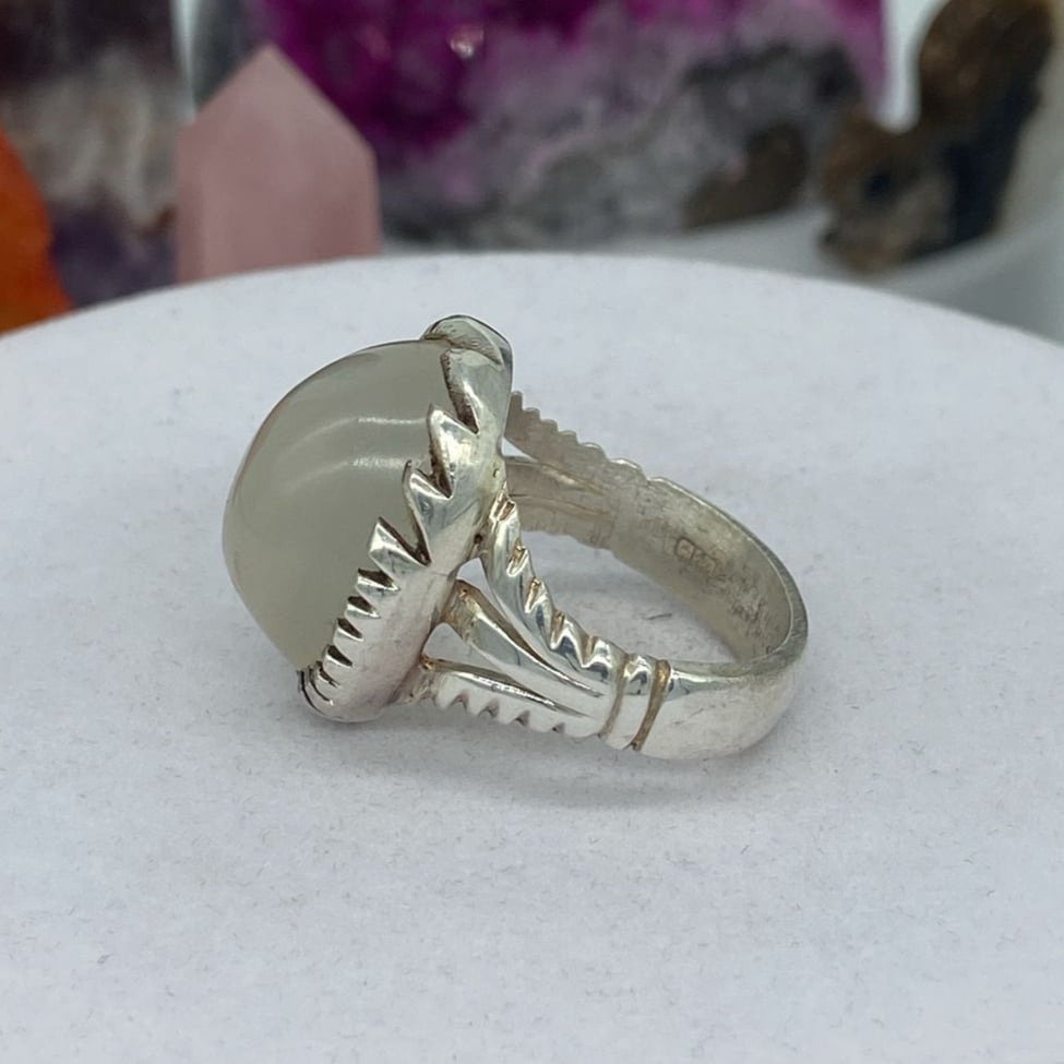 مصاغ على قاعدة من الفضة الخالصة 925 بتصميم فاخر يبرز نقاء الحجر وجماله الفريد.