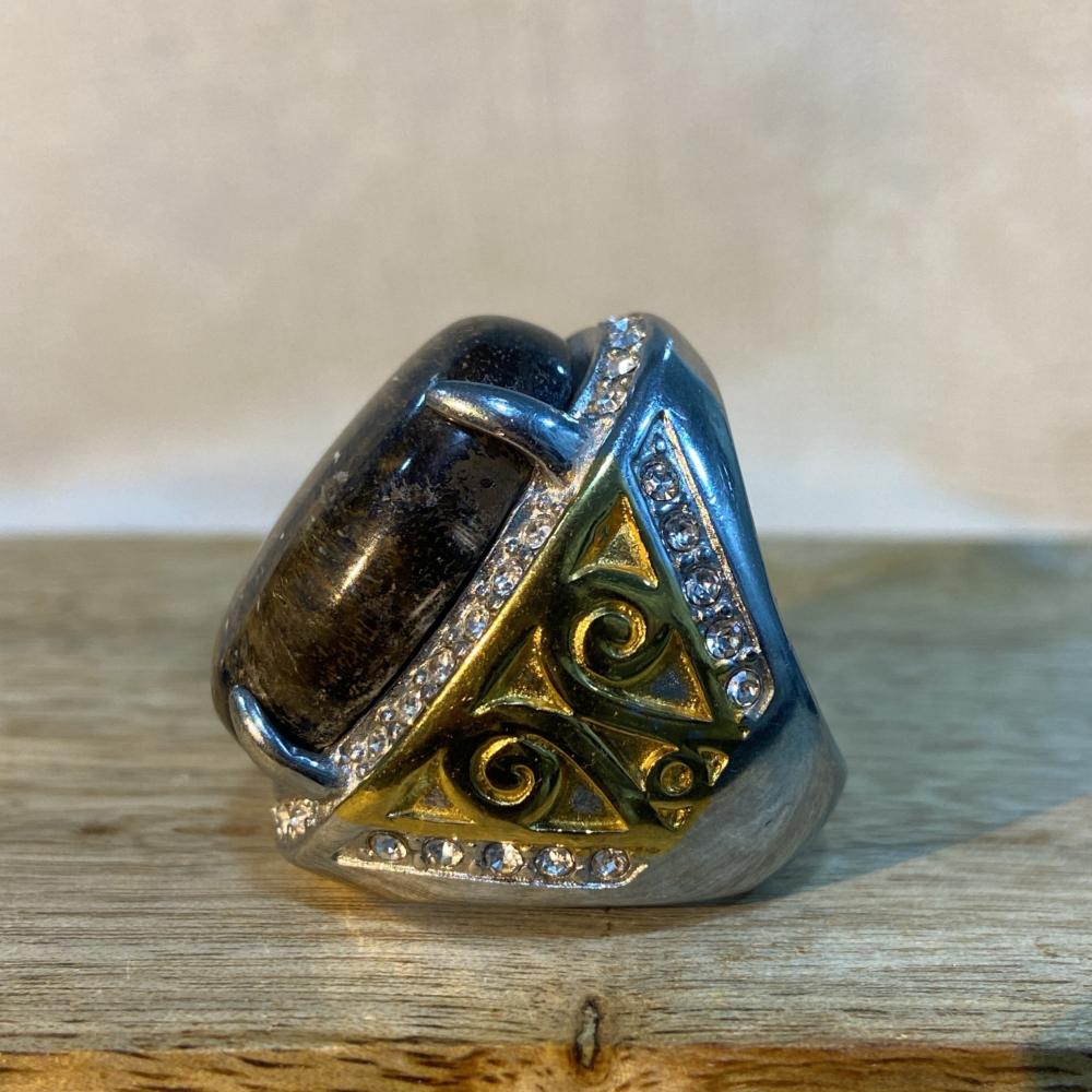 خاتم رجالي فاخر يتوسطه حجر عقيق جلد النمر الطبيعي المميز بخطوطه وألوانه الفريدة التي تشبه جلد النمر، ما يمنحه طابعًا فريدًا وحضورًا قويًا.