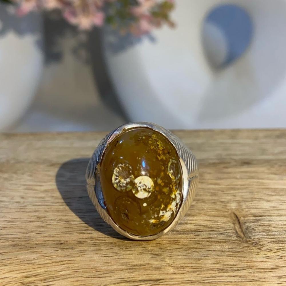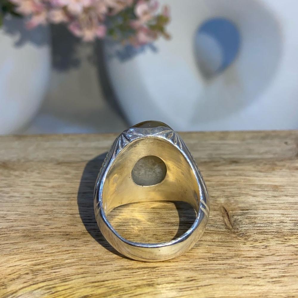 مصاغ بعناية على قاعدة من فضة عيار 925 بتصميم شرقي فاخر يُبرز جاذبية الحجر ويُضفي حضورًا قويًا وأناقة خاصة.