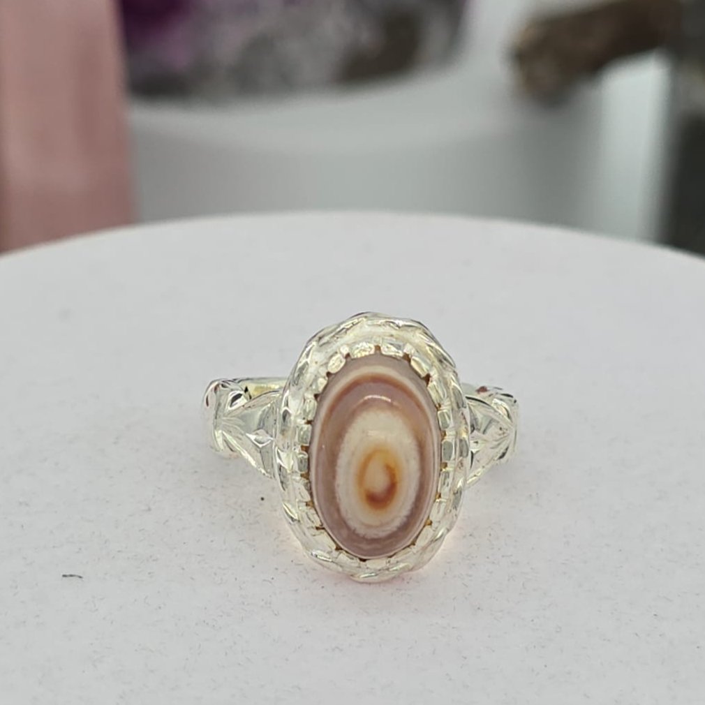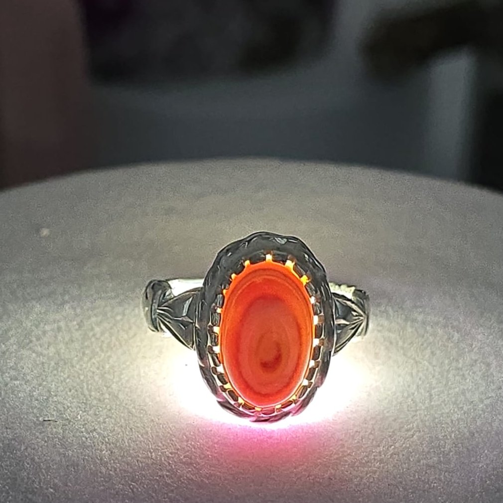 مصاغ بعناية على قاعدة من فضة عيار 950 بتصميم شرقي فاخر يُبرز جاذبية الحجر ويُضفي حضورًا قويًا وأناقة خاصة.