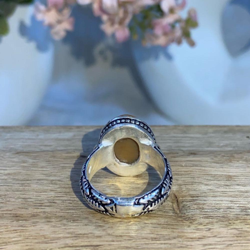 مصاغ بعناية على قاعدة من فضة عيار 950 بتصميم شرقي فاخر يُبرز جاذبية الحجر ويُضفي حضورًا قويًا وأناقة خاصة.
