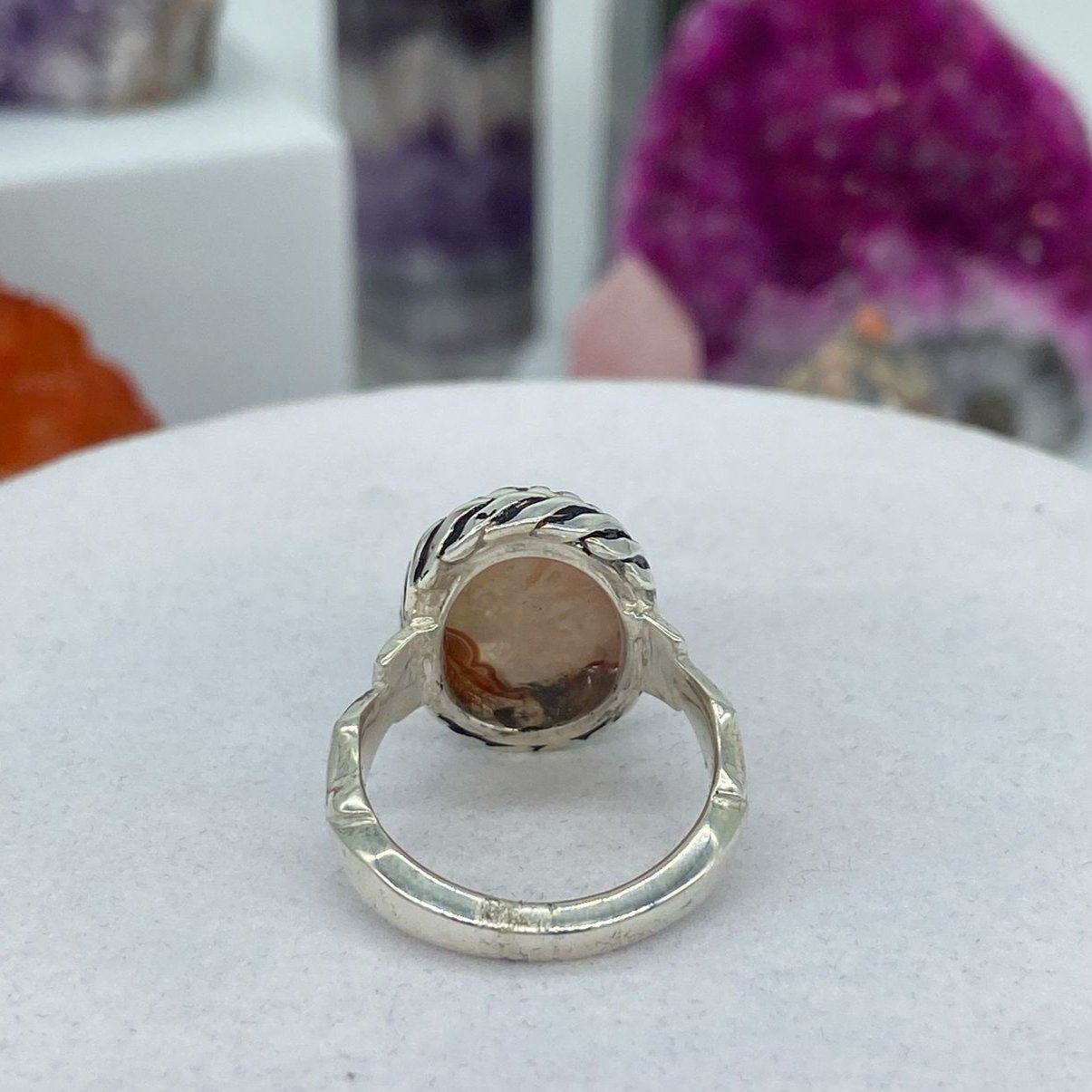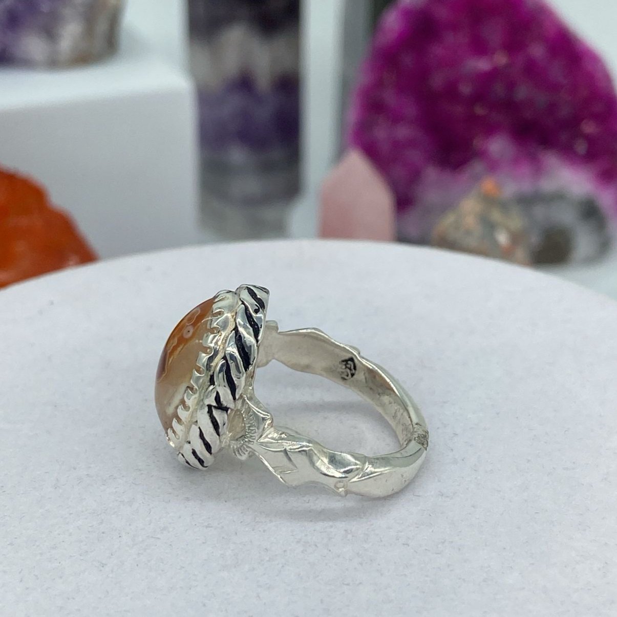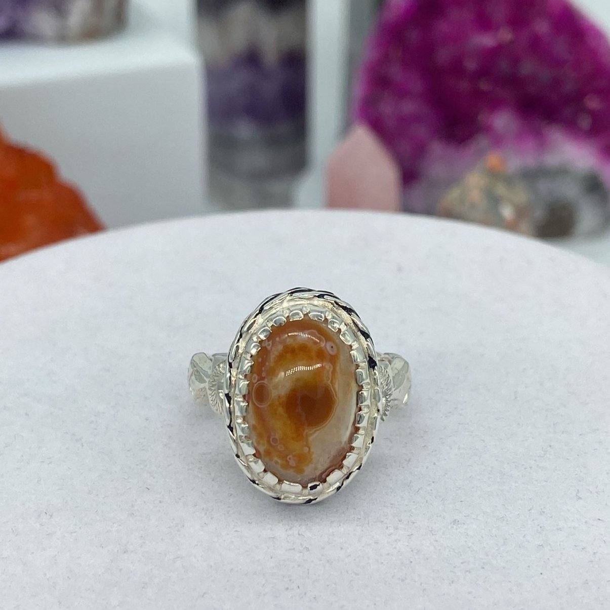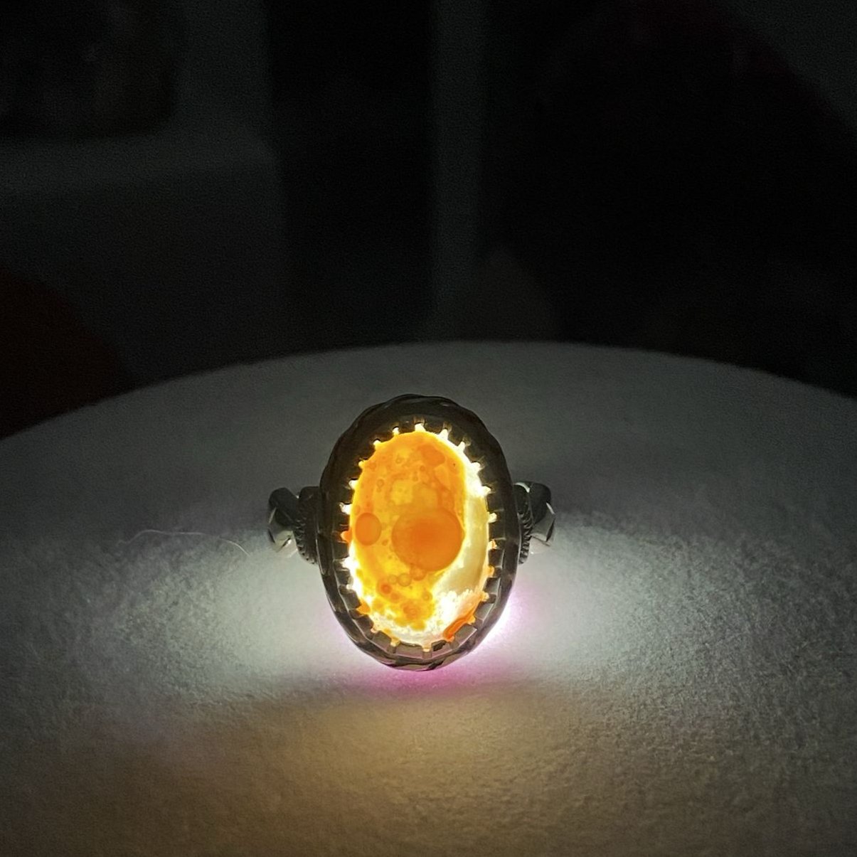 مصاغ بعناية على قاعدة من فضة عيار 950 بتصميم شرقي فاخر يُبرز جاذبية الحجر ويُضفي حضورًا قويًا وأناقة خاصة.