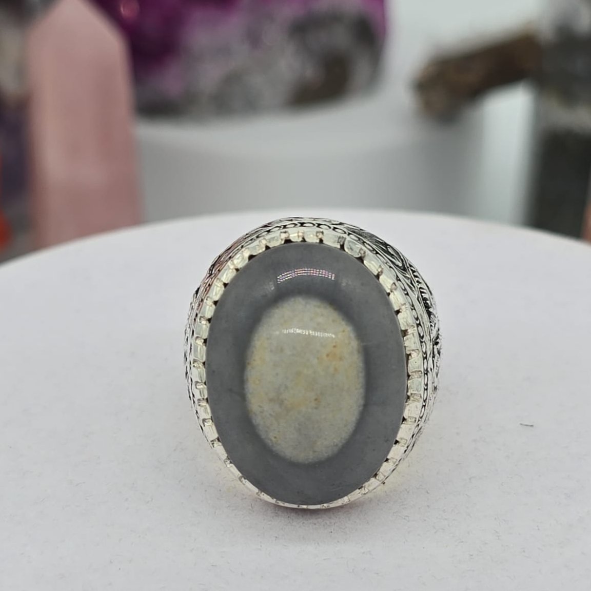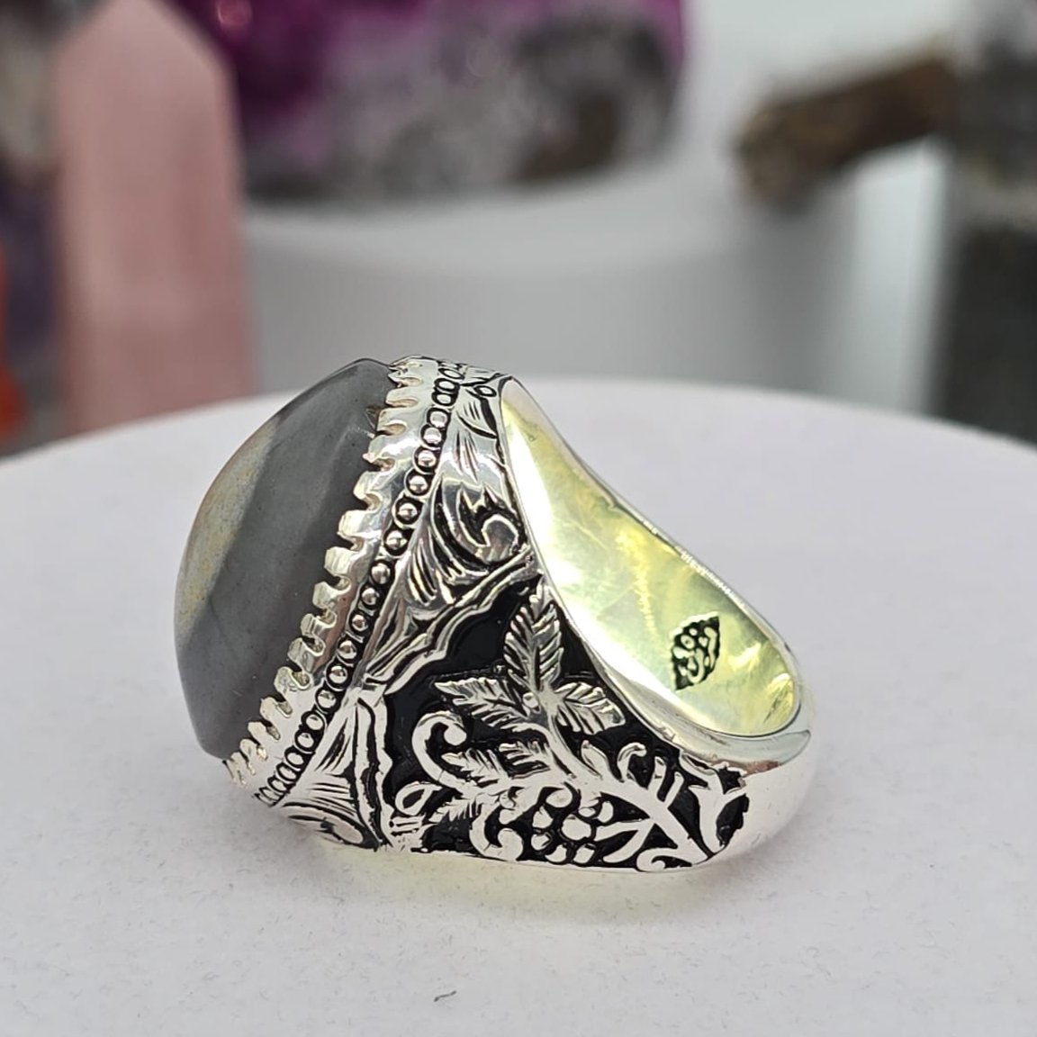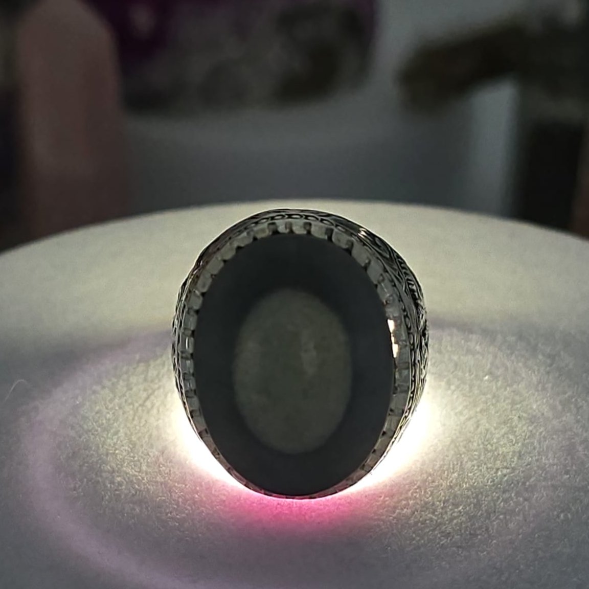 مصاغ بعناية على قاعدة من فضة عيار 950 بتصميم شرقي فاخر يُبرز جاذبية الحجر ويُضفي حضورًا قويًا وأناقة خاصة.