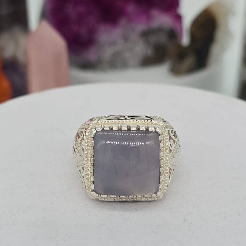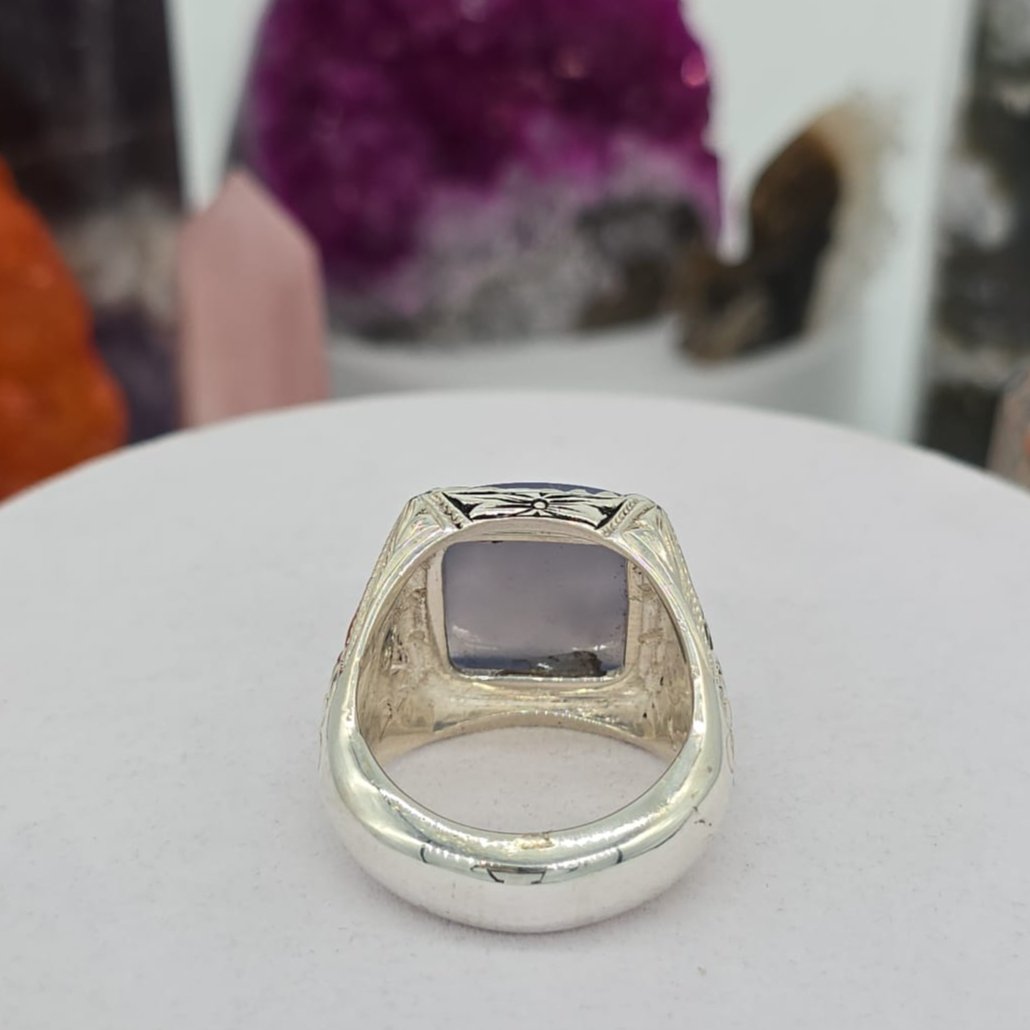 خاتم رجالي أنيق يتوسطه حجر عقيق سوسني طبيعي، مصاغ على قاعدة من فضة عيار 950 بتصميم شرقي فاخر يُبرز جمال الحجر ونقوشه الطبيعية. قطعة فريدة تعكس التفرد والأصالة، وتضفي حضورًا جذّابًا سواء في الإطلالة اليومية أو المناسبات الخاصة.