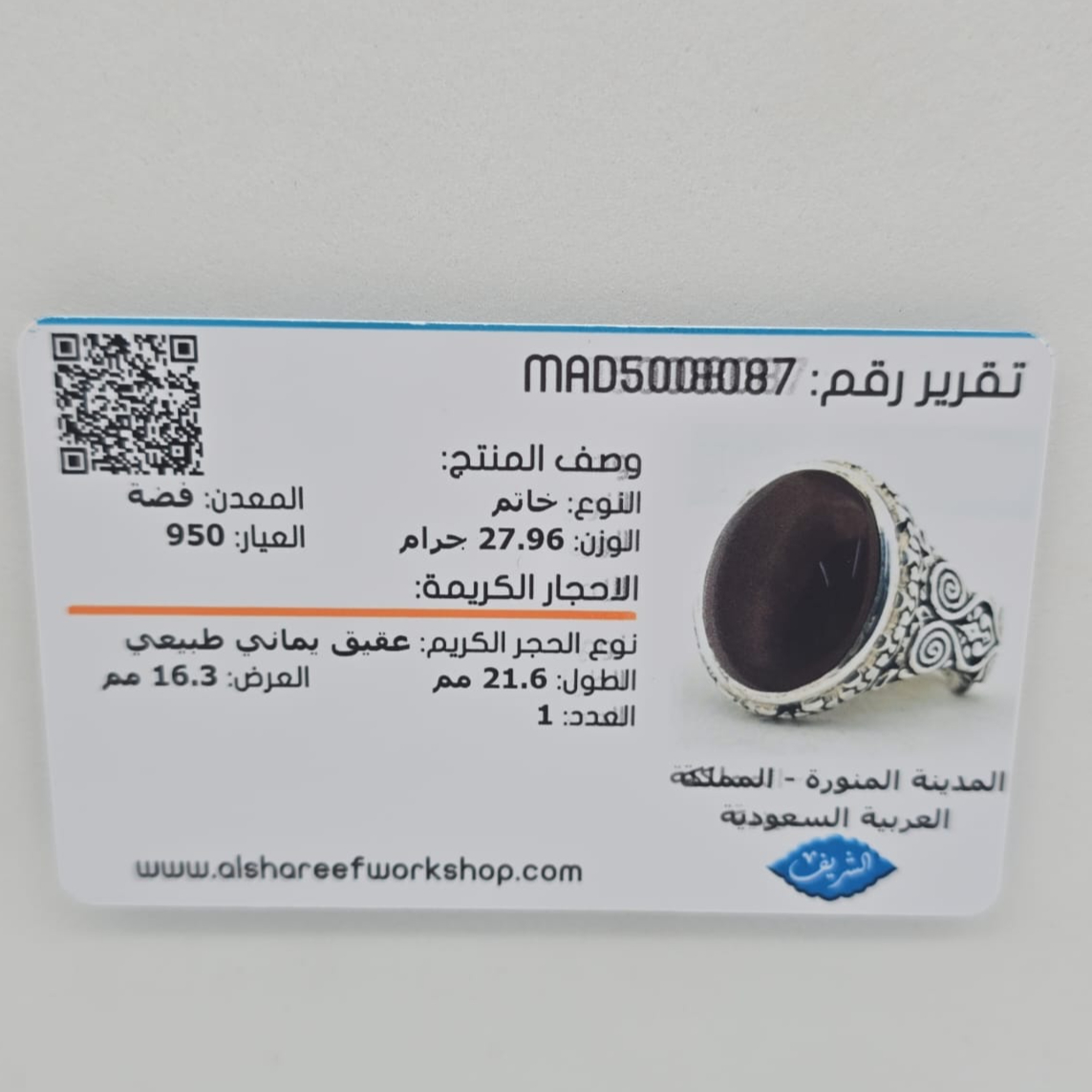 مقاس الخاتم: 27 عربي