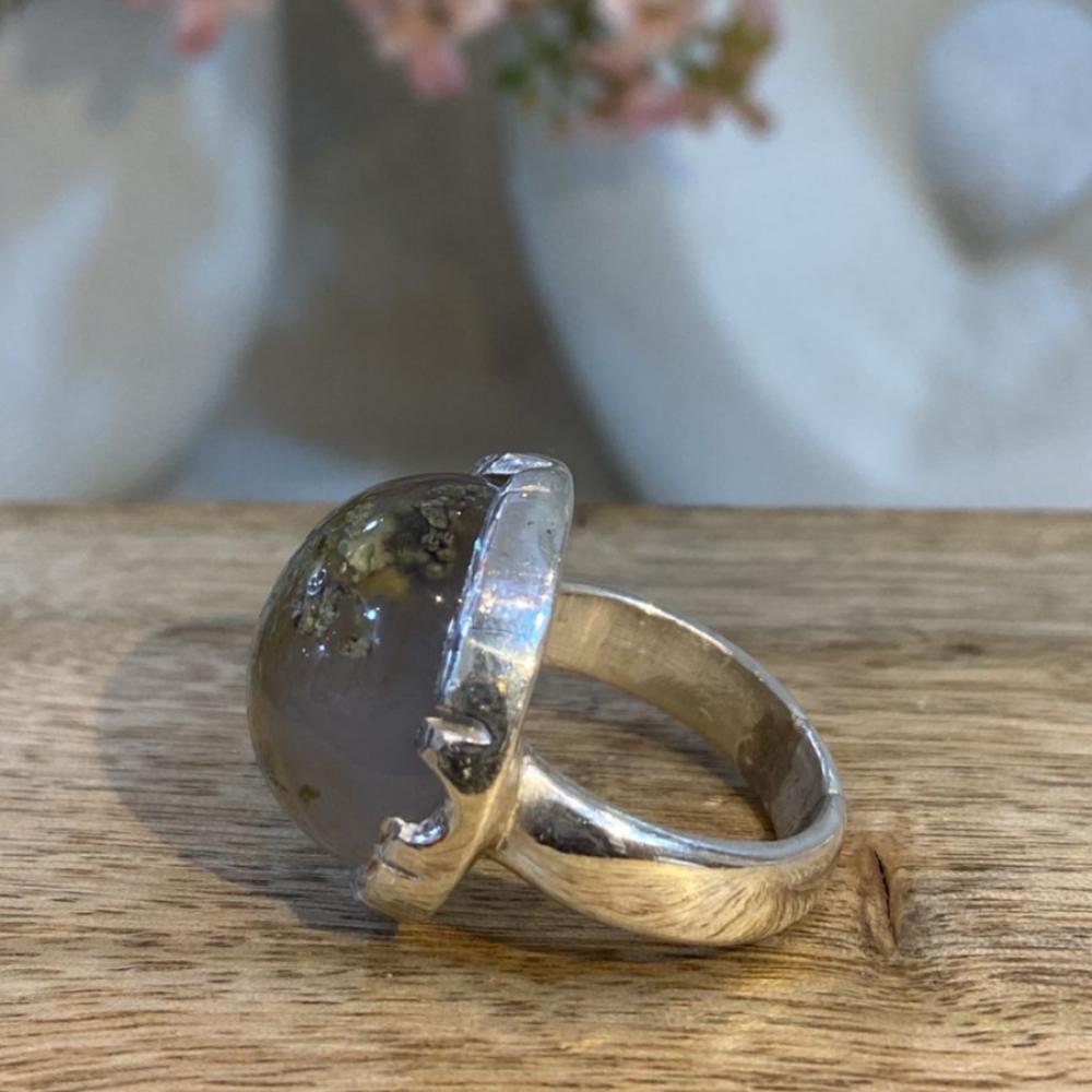 خاتم رجالي فاخر يتوسطه حجر عقيق ورد الربيع الطبيعي بألوانه الناعمة التي تحاكي تفتح الزهور، مصاغ على قاعدة من فضة عيار 925 بتصميم شرقي أنيق يناسب الرجل ذو الذوق الرفيع. قطعة تعبّر عن التفرد والجاذبية وتُضفي حضورًا راقيًا على الإطلالة اليومية والمناسبات الخاصة.