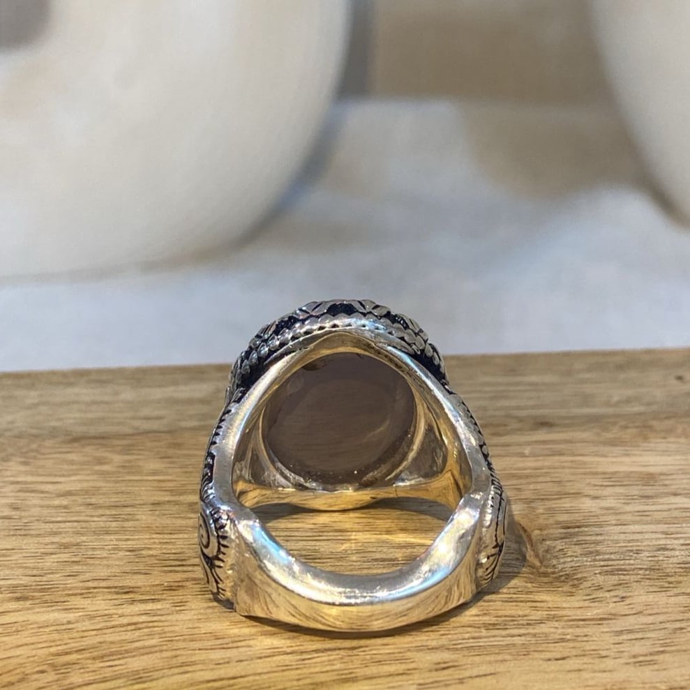 خاتم رجالي أنيق يتوسطه حجر عقيق يماني طبيعي، مصاغ على قاعدة من فضة عيار 950بتصميم شرقي فاخر يُبرز جمال الحجر وعمقه الطبيعي. قطعة فريدة تعكس التفرد والأصالة، وتضفي حضورًا راقيًا سواء في الإطلالة اليومية أو المناسبات الخاصة.