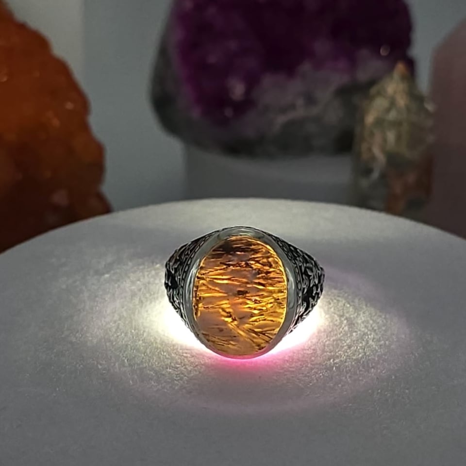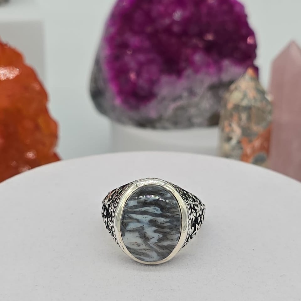 مصاغ على قاعدة من فضة عيار 950 بتصميم أنيق يعكس جاذبية الحجر ويضفي لمسة راقية على الإطلالة.