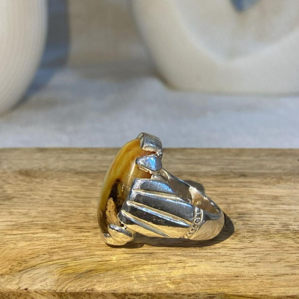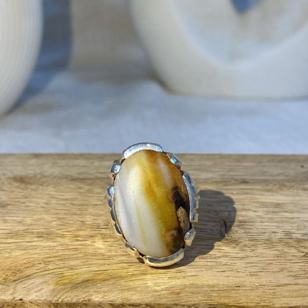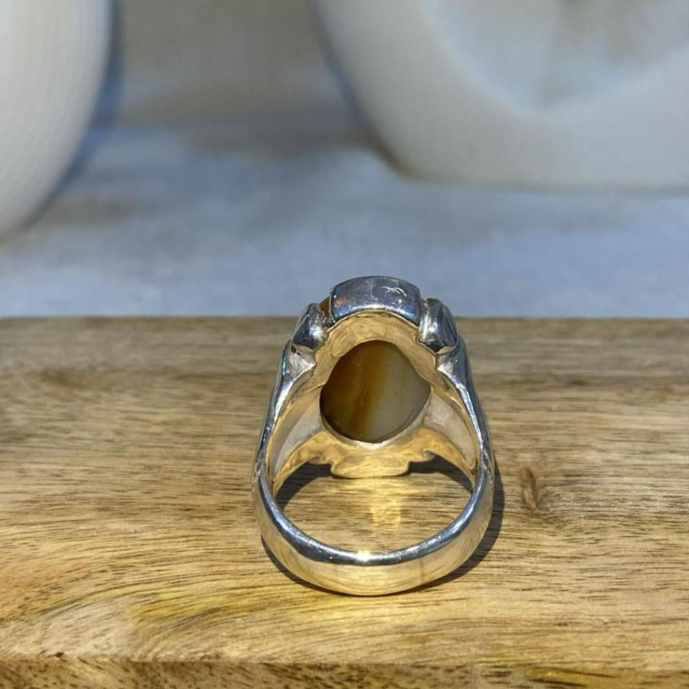 خاتم مميز بحجر العقيق اليماني الطبيعي المعروف بجمال ألوانه وطاقته الفريدة، صيغ بإتقان من فضة نقية 925 ليجمع بين الأصالة والفخامة. قطعة أنيقة تضيف إلى إطلالتك لمسة من العمق والهيبة، وتليق بالذواقة ومحبي الأحجار الكريمة النادرة.