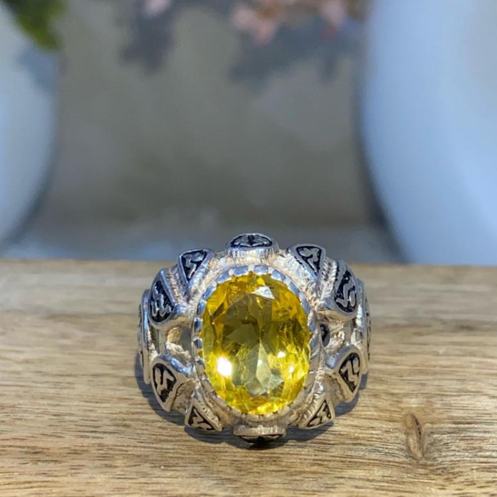 خاتم فضة رجالي بلون ذهبي يمنحك حضورًا لافتًا وأناقة لا مثيل لها. صُمم الخاتم بعناية على قاعدة من الفضة عيار 950 مع تصميم شرقي أصيل