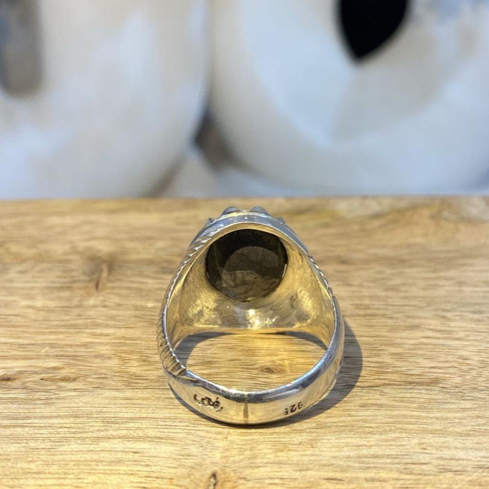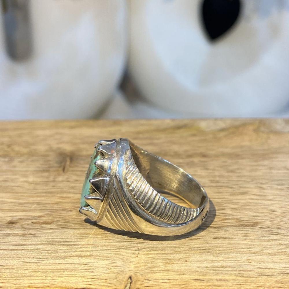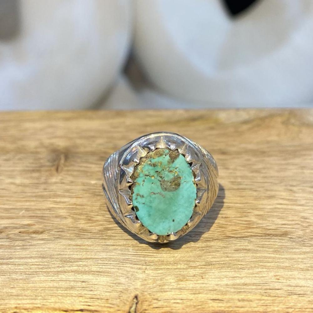 خاتم أنيق يتوسطه حجر فيروز نيشابوري طبيعي، مصاغ على قاعدة من فضة عيار 925 بتصميم شرقي فاخر يُبرز لون الحجر الأزرق المميز ونعومة ملامحه الطبيعية. قطعة فريدة تضفي لمسة من الأصالة والفخامة على الإطلالة اليومية والمناسبات الخاصة، وتعكس ذوقًا راقيًا للشخصية التي ترتديه.