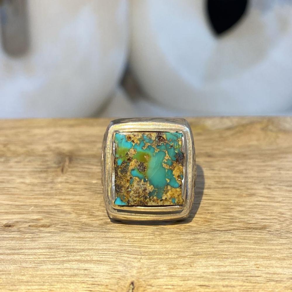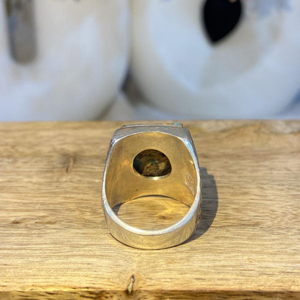 خاتم أنيق يتوسطه حجر فيروز نيشابوري طبيعي، مصاغ على قاعدة من فضة عيار 925 بتصميم شرقي فاخر يُبرز لون الحجر الأزرق المميز ونعومة ملامحه الطبيعية. قطعة فريدة تضفي لمسة من الأصالة والفخامة على الإطلالة اليومية والمناسبات الخاصة، وتعكس ذوقًا راقيًا للشخصية التي ترتديه.