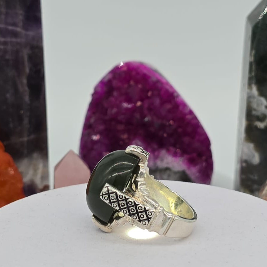 مصاغ بعناية على قاعدة من فضة عيار 950 بتصميم شرقي أنيق يُبرز جمال الحجر ويمنحه ثقلًا وأناقة في الإطلالة اليومية والمناسبات الخاصة.