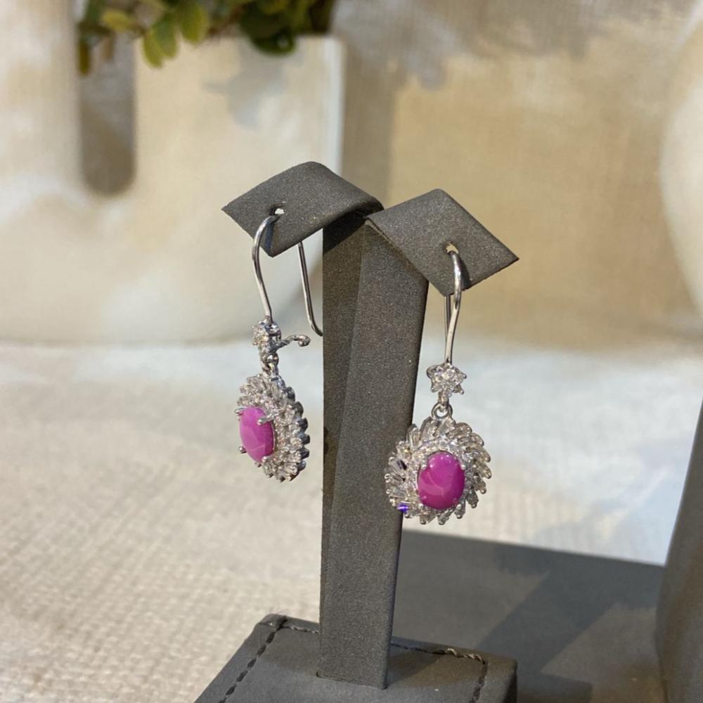 طقم ياقوت نجمي وردي مرصع زركون – فضة 925 مطلية روديوم